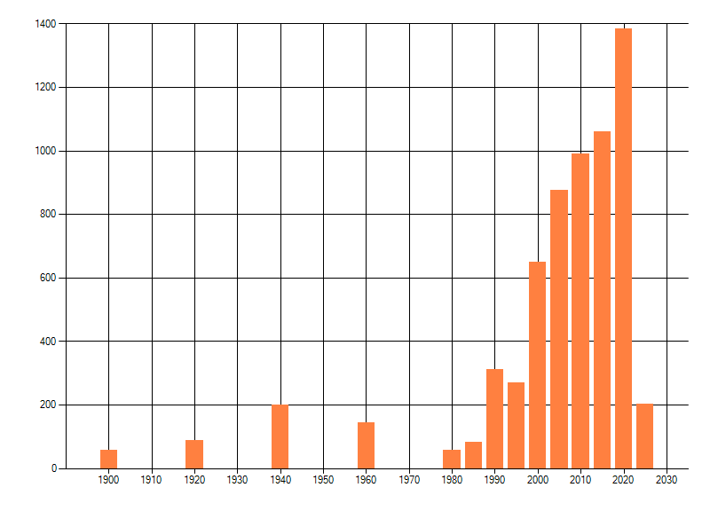 Het aantal atlasblokken (5x5 km) waarin de soort is gemeld binnen een periode van vijf jaar (vanaf 1980) of twintig jaar. Niet gecorrigeerd voor waarnemersinspanning en het aantal doorgegeven waarnemingen kan sterk variëren per periode, dus een trend in verspreiding kan hier niet direct uit worden afgelezen. Het opgegeven jaartal is het eerste jaar van de periode. Bron: gevalideerde waarnemingen uit de NDFF.