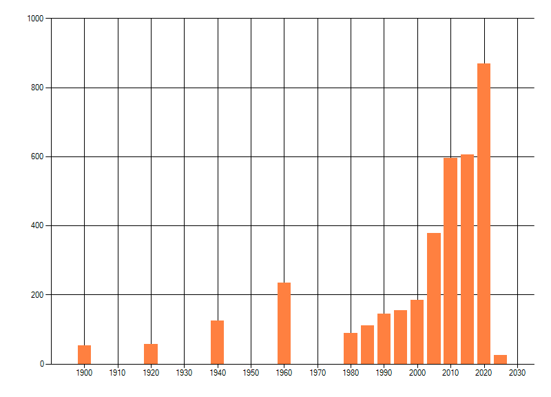 Het aantal atlasblokken (5x5 km) waarin de soort is gemeld binnen een periode van vijf jaar (vanaf 1980) of twintig jaar. Niet gecorrigeerd voor waarnemersinspanning en het aantal doorgegeven waarnemingen kan sterk variëren per periode, dus een trend in verspreiding kan hier niet direct uit worden afgelezen. Het opgegeven jaartal is het eerste jaar van de periode. Bron: gevalideerde waarnemingen uit de NDFF.