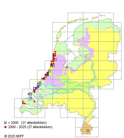 Zeer zeldzaam. Wordt alleen af en toe waargenomen in de duinen. RL: gevoelig.