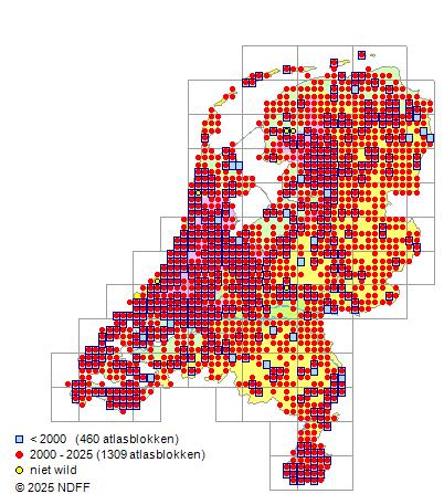 Bron: FLORON - Gemodelleerd op basis van waarnemingen uit de NDFF voor de periode 2000-2021.
