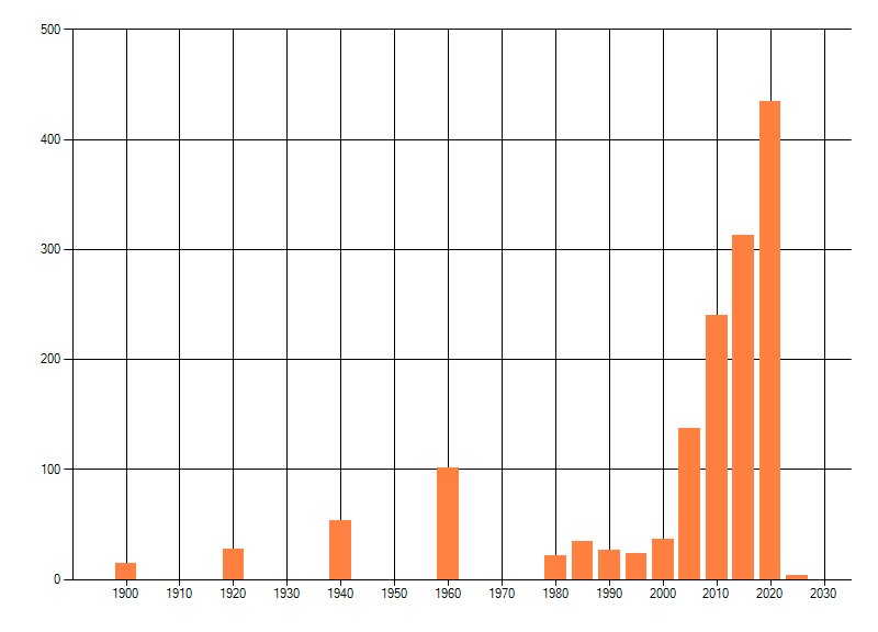 Het aantal atlasblokken (5x5 km) waarin de soort is gemeld binnen een periode van vijf jaar (vanaf 1980) of twintig jaar. Niet gecorrigeerd voor waarnemersinspanning en het aantal doorgegeven waarnemingen kan sterk variëren per periode, dus een trend in verspreiding kan hier niet direct uit worden afgelezen. Het opgegeven jaartal is het eerste jaar van de periode. Bron: gevalideerde waarnemingen uit de NDFF.
