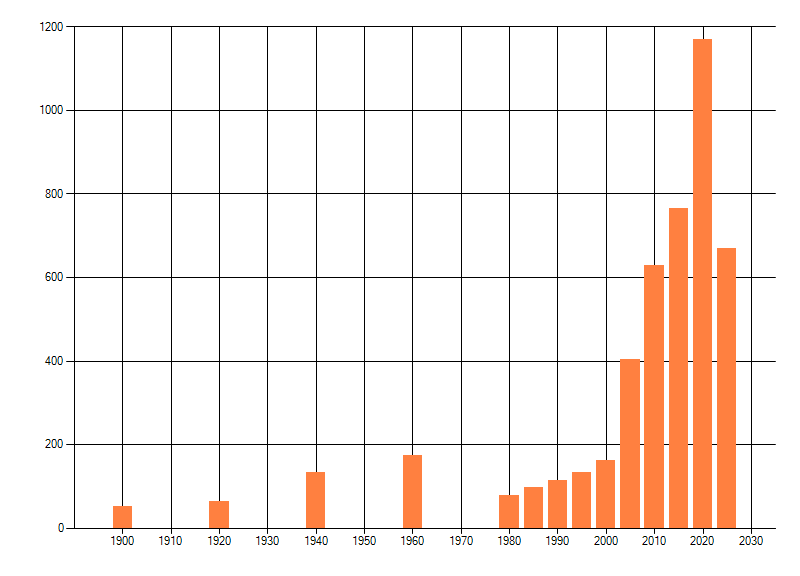 Het aantal atlasblokken (5x5 km) waarin de soort is gemeld binnen een periode van vijf jaar (vanaf 1980) of twintig jaar. Niet gecorrigeerd voor waarnemersinspanning en het aantal doorgegeven waarnemingen kan sterk variëren per periode, dus een trend in verspreiding kan hier niet direct uit worden afgelezen. Het opgegeven jaartal is het eerste jaar van de periode. Bron: gevalideerde waarnemingen uit de NDFF.