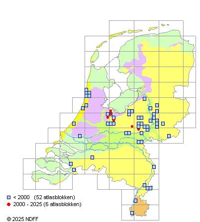 Zeer zeldzaam. Wordt tegenwoordig alleen nog maar af en toe in Midden- en Oost-Nederland waargenomen. RL: ernstig bedreigd.