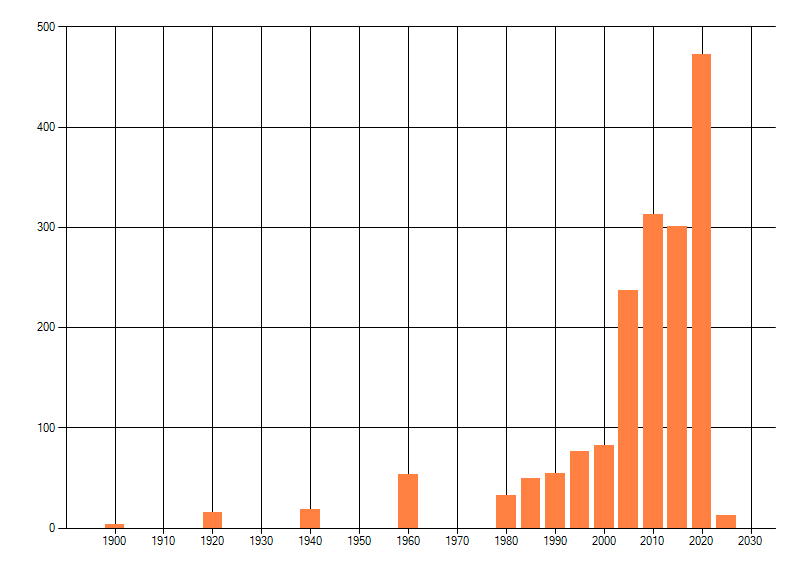 Het aantal atlasblokken (5x5 km) waarin de soort is gemeld binnen een periode van vijf jaar (vanaf 1980) of twintig jaar. Niet gecorrigeerd voor waarnemersinspanning en het aantal doorgegeven waarnemingen kan sterk variëren per periode, dus een trend in verspreiding kan hier niet direct uit worden afgelezen. Het opgegeven jaartal is het eerste jaar van de periode. Bron: gevalideerde waarnemingen uit de NDFF.
