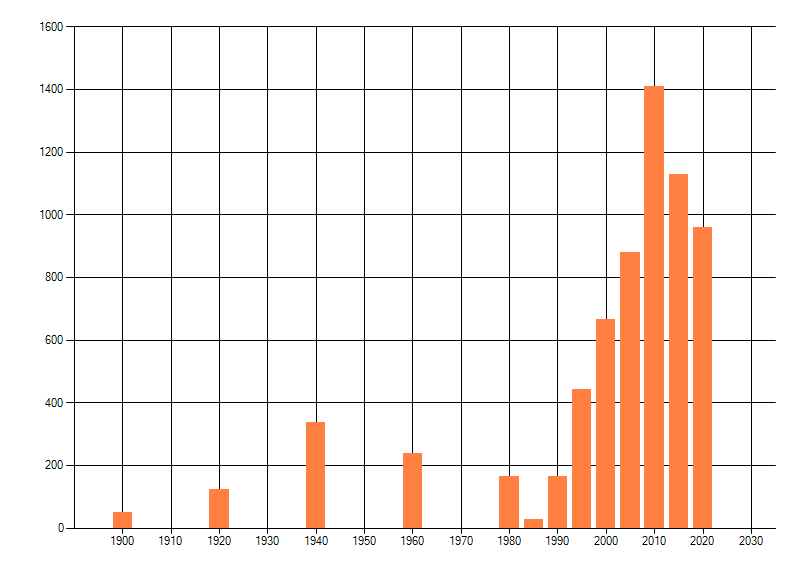 Het aantal atlasblokken (5x5 km) waarin de soort is gemeld binnen een periode van vijf jaar (vanaf 1980) of twintig jaar. Niet gecorrigeerd voor waarnemersinspanning en het aantal doorgegeven waarnemingen kan sterk variëren per periode, dus een trend in verspreiding kan hier niet direct uit worden afgelezen. Het opgegeven jaartal is het eerste jaar van de periode. Bron: gevalideerde waarnemingen uit de NDFF.