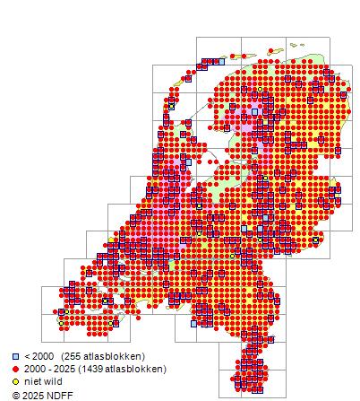Bron: FLORON - Gemodelleerd op basis van waarnemingen uit de NDFF voor de periode 2000-2021.