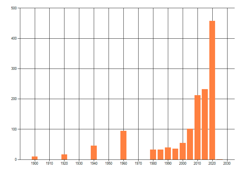Het aantal atlasblokken (5x5 km) waarin de soort is gemeld binnen een periode van vijf jaar (vanaf 1980) of twintig jaar. Niet gecorrigeerd voor waarnemersinspanning en het aantal doorgegeven waarnemingen kan sterk variëren per periode, dus een trend in verspreiding kan hier niet direct uit worden afgelezen. Het opgegeven jaartal is het eerste jaar van de periode. Bron: gevalideerde waarnemingen uit de NDFF.