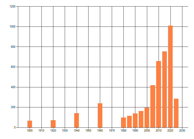 Het aantal atlasblokken (5x5 km) waarin de soort is gemeld binnen een periode van vijf jaar (vanaf 1980) of twintig jaar. Niet gecorrigeerd voor waarnemersinspanning en het aantal doorgegeven waarnemingen kan sterk variëren per periode, dus een trend in verspreiding kan hier niet direct uit worden afgelezen. Het opgegeven jaartal is het eerste jaar van de periode. Bron: gevalideerde waarnemingen uit de NDFF.