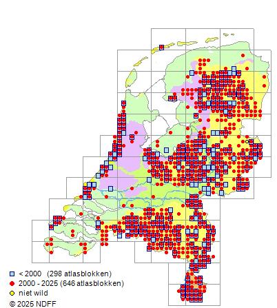 Bron: FLORON - Gemodelleerd op basis van waarnemingen uit de NDFF voor de periode 2000-2021.