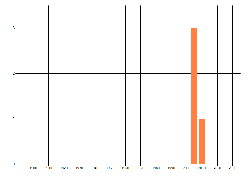 Het aantal atlasblokken (5x5 km) waarin de soort is gemeld binnen een periode van vijf jaar (vanaf 1980) of twintig jaar. Niet gecorrigeerd voor waarnemersinspanning en het aantal doorgegeven waarnemingen kan sterk variëren per periode, dus een trend in verspreiding kan hier niet direct uit worden afgelezen. Het opgegeven jaartal is het eerste jaar van de periode. Bron: gevalideerde waarnemingen uit de NDFF.