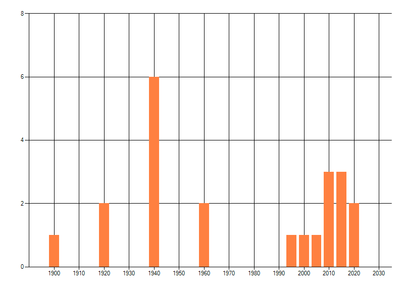 Het aantal atlasblokken (5x5 km) waarin de soort is gemeld binnen een periode van vijf jaar (vanaf 1980) of twintig jaar. Niet gecorrigeerd voor waarnemersinspanning en het aantal doorgegeven waarnemingen kan sterk variëren per periode, dus een trend in verspreiding kan hier niet direct uit worden afgelezen. Het opgegeven jaartal is het eerste jaar van de periode. Bron: gevalideerde waarnemingen uit de NDFF.