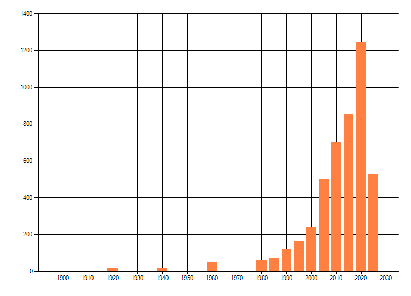 Het aantal atlasblokken (5x5 km) waarin de soort is gemeld binnen een periode van vijf jaar (vanaf 1980) of twintig jaar. Niet gecorrigeerd voor waarnemersinspanning en het aantal doorgegeven waarnemingen kan sterk variëren per periode, dus een trend in verspreiding kan hier niet direct uit worden afgelezen. Het opgegeven jaartal is het eerste jaar van de periode. Bron: gevalideerde waarnemingen uit de NDFF.