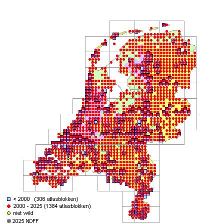 Bron: FLORON - Gemodelleerd op basis van waarnemingen uit de NDFF voor de periode 2000-2021.