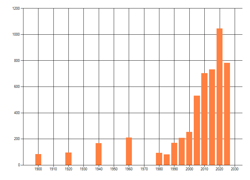 Het aantal atlasblokken (5x5 km) waarin de soort is gemeld binnen een periode van vijf jaar (vanaf 1980) of twintig jaar. Niet gecorrigeerd voor waarnemersinspanning en het aantal doorgegeven waarnemingen kan sterk variëren per periode, dus een trend in verspreiding kan hier niet direct uit worden afgelezen. Het opgegeven jaartal is het eerste jaar van de periode. Bron: gevalideerde waarnemingen uit de NDFF.