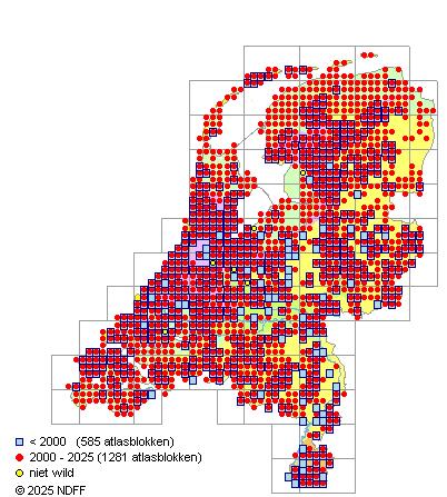 Bron: FLORON - Gemodelleerd op basis van waarnemingen uit de NDFF voor de periode 2000-2021.