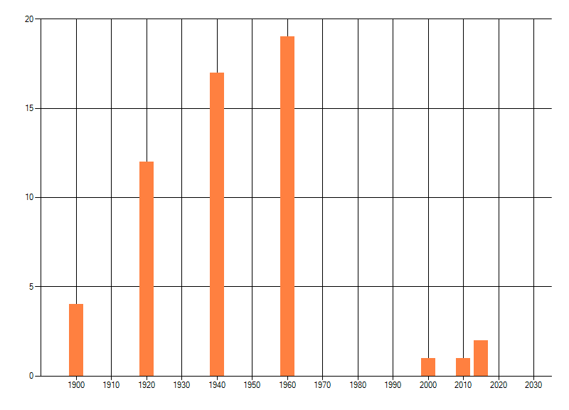 Het aantal atlasblokken (5x5 km) waarin de soort is gemeld binnen een periode van vijf jaar (vanaf 1980) of twintig jaar. Niet gecorrigeerd voor waarnemersinspanning en het aantal doorgegeven waarnemingen kan sterk variëren per periode, dus een trend in verspreiding kan hier niet direct uit worden afgelezen. Het opgegeven jaartal is het eerste jaar van de periode. Bron: gevalideerde waarnemingen uit de NDFF.