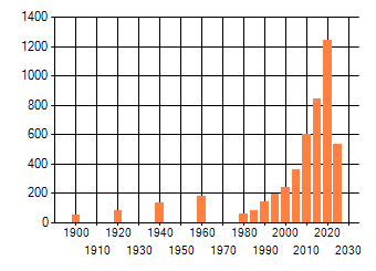 Het aantal atlasblokken (5x5 km) waarin de soort is gemeld binnen een periode van vijf jaar (vanaf 1980) of twintig jaar. Niet gecorrigeerd voor waarnemersinspanning en het aantal doorgegeven waarnemingen kan sterk variëren per periode, dus een trend in verspreiding kan hier niet direct uit worden afgelezen. Het opgegeven jaartal is het eerste jaar van de periode. Bron: gevalideerde waarnemingen uit de NDFF.