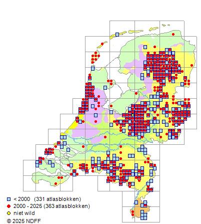 Bron: FLORON - Gemodelleerd op basis van waarnemingen uit de NDFF voor de periode 2000-2021.