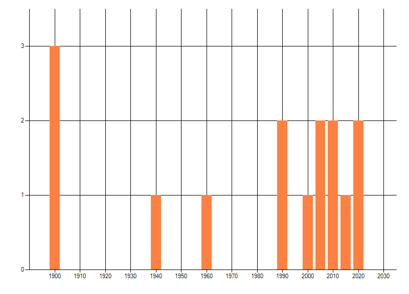 Het aantal atlasblokken (5x5 km) waarin de soort is gemeld binnen een periode van vijf jaar (vanaf 1980) of twintig jaar. Niet gecorrigeerd voor waarnemersinspanning en het aantal doorgegeven waarnemingen kan sterk variëren per periode, dus een trend in verspreiding kan hier niet direct uit worden afgelezen. Het opgegeven jaartal is het eerste jaar van de periode. Bron: gevalideerde waarnemingen uit de NDFF.