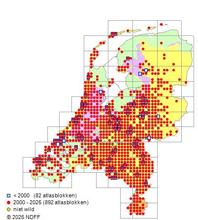Bron: FLORON - Gemodelleerd op basis van waarnemingen uit de NDFF voor de periode 2000-2021.