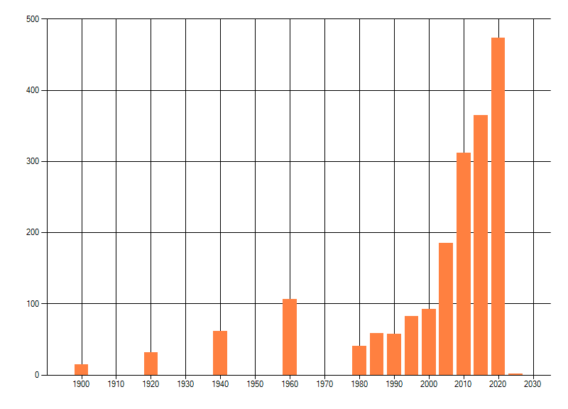 Het aantal atlasblokken (5x5 km) waarin de soort is gemeld binnen een periode van vijf jaar (vanaf 1980) of twintig jaar. Niet gecorrigeerd voor waarnemersinspanning en het aantal doorgegeven waarnemingen kan sterk variëren per periode, dus een trend in verspreiding kan hier niet direct uit worden afgelezen. Het opgegeven jaartal is het eerste jaar van de periode. Bron: gevalideerde waarnemingen uit de NDFF.