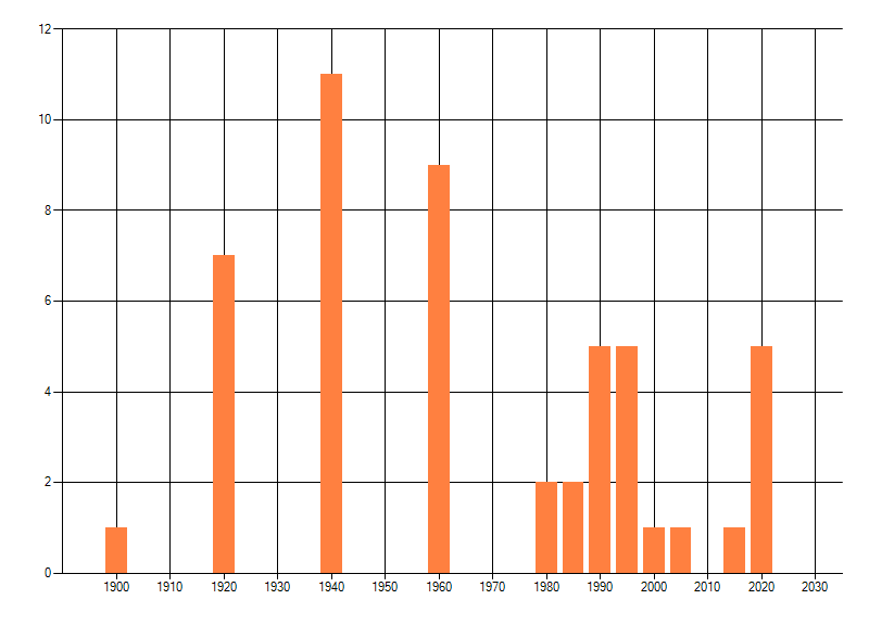 Het aantal atlasblokken (5x5 km) waarin de soort is gemeld binnen een periode van vijf jaar (vanaf 1980) of twintig jaar. Niet gecorrigeerd voor waarnemersinspanning en het aantal doorgegeven waarnemingen kan sterk variëren per periode, dus een trend in verspreiding kan hier niet direct uit worden afgelezen. Het opgegeven jaartal is het eerste jaar van de periode. Bron: gevalideerde waarnemingen uit de NDFF.