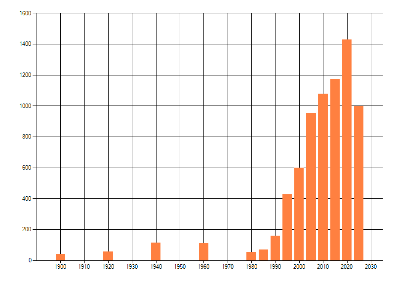 Het aantal atlasblokken (5x5 km) waarin de soort is gemeld binnen een periode van vijf jaar (vanaf 1980) of twintig jaar. Niet gecorrigeerd voor waarnemersinspanning en het aantal doorgegeven waarnemingen kan sterk variëren per periode, dus een trend in verspreiding kan hier niet direct uit worden afgelezen. Het opgegeven jaartal is het eerste jaar van de periode. Bron: gevalideerde waarnemingen uit de NDFF.