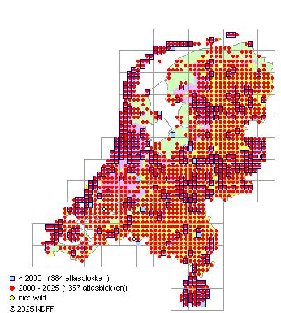 Bron: FLORON - Gemodelleerd op basis van waarnemingen uit de NDFF voor de periode 2000-2021.