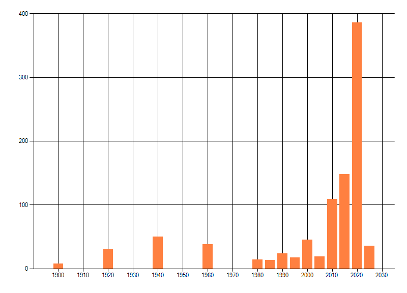 Het aantal atlasblokken (5x5 km) waarin de soort is gemeld binnen een periode van vijf jaar (vanaf 1980) of twintig jaar. Niet gecorrigeerd voor waarnemersinspanning en het aantal doorgegeven waarnemingen kan sterk variëren per periode, dus een trend in verspreiding kan hier niet direct uit worden afgelezen. Het opgegeven jaartal is het eerste jaar van de periode. Bron: gevalideerde waarnemingen uit de NDFF.