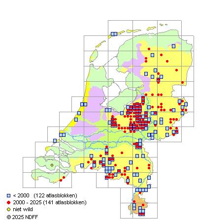 Bron: FLORON - Gemodelleerd op basis van waarnemingen uit de NDFF voor de periode 2000-2021.
