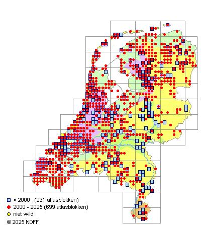 Bron: FLORON - Gemodelleerd op basis van waarnemingen uit de NDFF voor de periode 2000-2021.