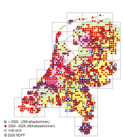 Bron: FLORON - Gemodelleerd op basis van waarnemingen uit de NDFF voor de periode 2000-2021.