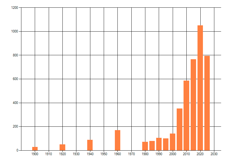 Het aantal atlasblokken (5x5 km) waarin de soort is gemeld binnen een periode van vijf jaar (vanaf 1980) of twintig jaar. Niet gecorrigeerd voor waarnemersinspanning en het aantal doorgegeven waarnemingen kan sterk variëren per periode, dus een trend in verspreiding kan hier niet direct uit worden afgelezen. Het opgegeven jaartal is het eerste jaar van de periode. Bron: gevalideerde waarnemingen uit de NDFF.