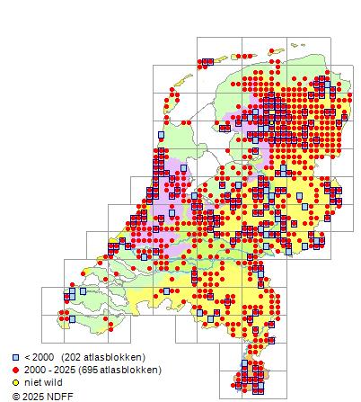 Bron: FLORON - Gemodelleerd op basis van waarnemingen uit de NDFF voor de periode 2000-2021.