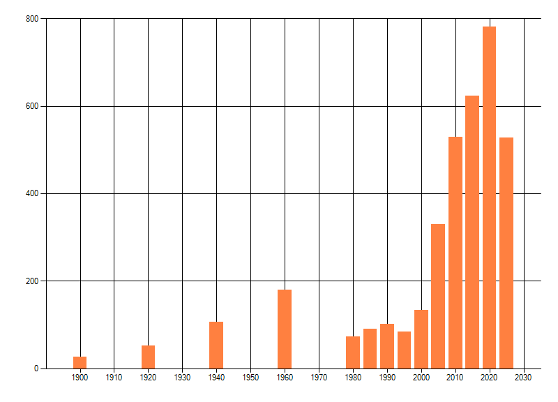 Het aantal atlasblokken (5x5 km) waarin de soort is gemeld binnen een periode van vijf jaar (vanaf 1980) of twintig jaar. Niet gecorrigeerd voor waarnemersinspanning en het aantal doorgegeven waarnemingen kan sterk variëren per periode, dus een trend in verspreiding kan hier niet direct uit worden afgelezen. Het opgegeven jaartal is het eerste jaar van de periode. Bron: gevalideerde waarnemingen uit de NDFF.