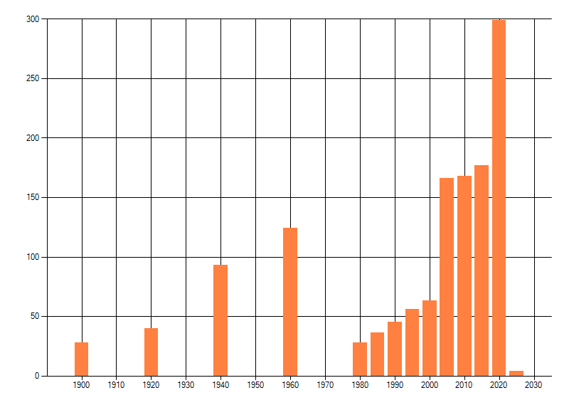 Het aantal atlasblokken (5x5 km) waarin de soort is gemeld binnen een periode van vijf jaar (vanaf 1980) of twintig jaar. Niet gecorrigeerd voor waarnemersinspanning en het aantal doorgegeven waarnemingen kan sterk variëren per periode, dus een trend in verspreiding kan hier niet direct uit worden afgelezen. Het opgegeven jaartal is het eerste jaar van de periode. Bron: gevalideerde waarnemingen uit de NDFF.