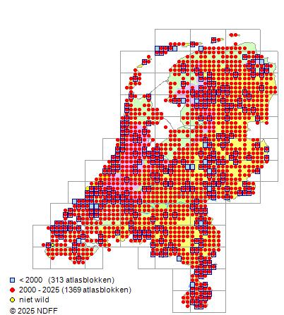 Bron: FLORON - Gemodelleerd op basis van waarnemingen uit de NDFF voor de periode 2000-2021.