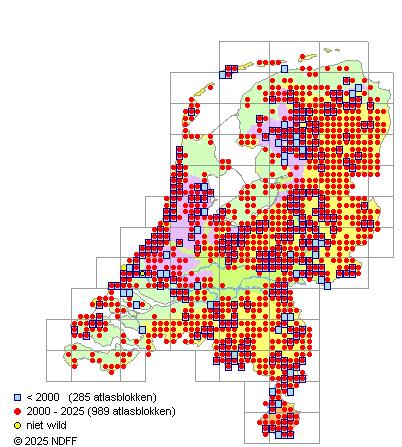 Bron: FLORON - Gemodelleerd op basis van waarnemingen uit de NDFF voor de periode 2000-2021.