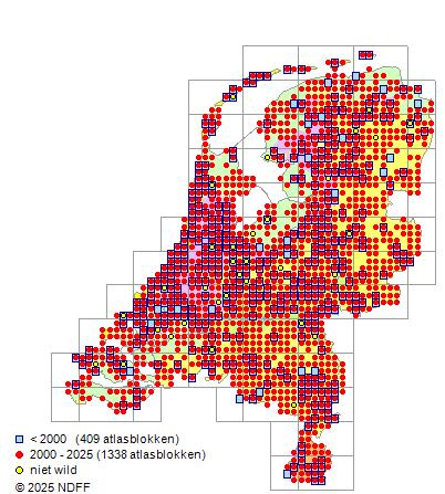 Bron: FLORON - Gemodelleerd op basis van waarnemingen uit de NDFF voor de periode 2000-2021.