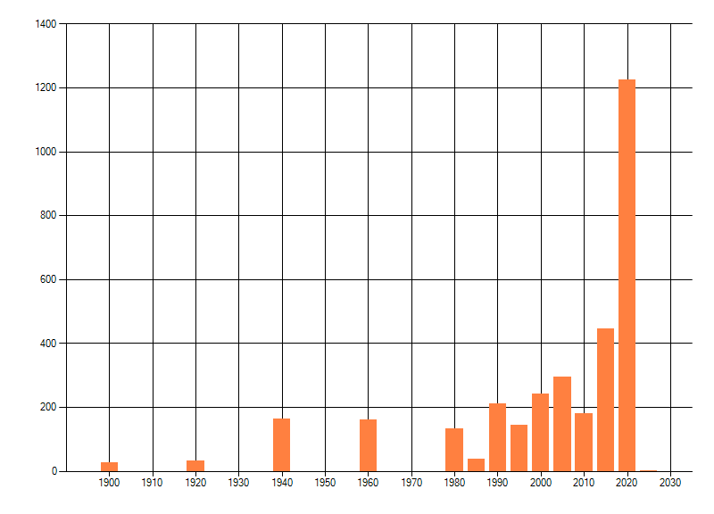 Het aantal atlasblokken (5x5 km) waarin de soort is gemeld binnen een periode van vijf jaar (vanaf 1980) of twintig jaar. Niet gecorrigeerd voor waarnemersinspanning en het aantal doorgegeven waarnemingen kan sterk variëren per periode, dus een trend in verspreiding kan hier niet direct uit worden afgelezen. Het opgegeven jaartal is het eerste jaar van de periode. Bron: gevalideerde waarnemingen uit de NDFF.
