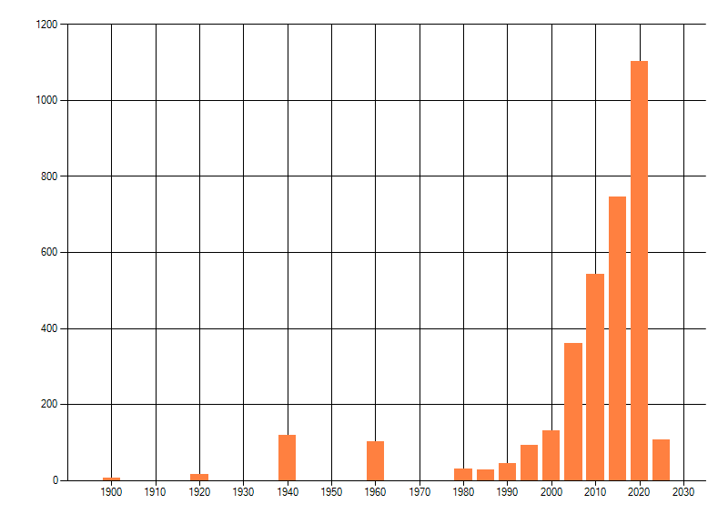 Het aantal atlasblokken (5x5 km) waarin de soort is gemeld binnen een periode van vijf jaar (vanaf 1980) of twintig jaar. Niet gecorrigeerd voor waarnemersinspanning en het aantal doorgegeven waarnemingen kan sterk variëren per periode, dus een trend in verspreiding kan hier niet direct uit worden afgelezen. Het opgegeven jaartal is het eerste jaar van de periode. Bron: gevalideerde waarnemingen uit de NDFF.