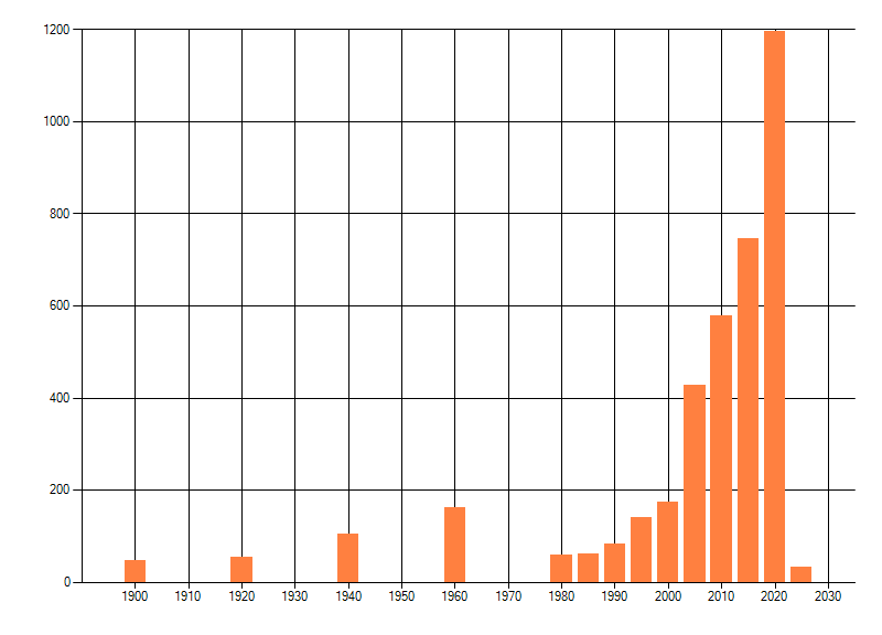 Het aantal atlasblokken (5x5 km) waarin de soort is gemeld binnen een periode van vijf jaar (vanaf 1980) of twintig jaar. Niet gecorrigeerd voor waarnemersinspanning en het aantal doorgegeven waarnemingen kan sterk variëren per periode, dus een trend in verspreiding kan hier niet direct uit worden afgelezen. Het opgegeven jaartal is het eerste jaar van de periode. Bron: gevalideerde waarnemingen uit de NDFF.