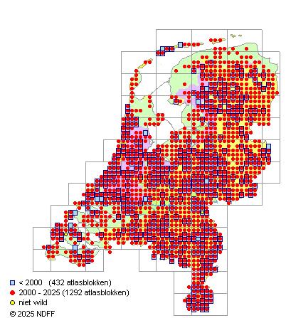 Bron: FLORON - Gemodelleerd op basis van waarnemingen uit de NDFF voor de periode 2000-2021.