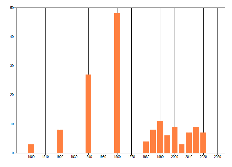 Het aantal atlasblokken (5x5 km) waarin de soort is gemeld binnen een periode van vijf jaar (vanaf 1980) of twintig jaar. Niet gecorrigeerd voor waarnemersinspanning en het aantal doorgegeven waarnemingen kan sterk variëren per periode, dus een trend in verspreiding kan hier niet direct uit worden afgelezen. Het opgegeven jaartal is het eerste jaar van de periode. Bron: gevalideerde waarnemingen uit de NDFF.