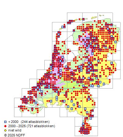 Bron: FLORON - Gemodelleerd op basis van waarnemingen uit de NDFF voor de periode 2000-2021.