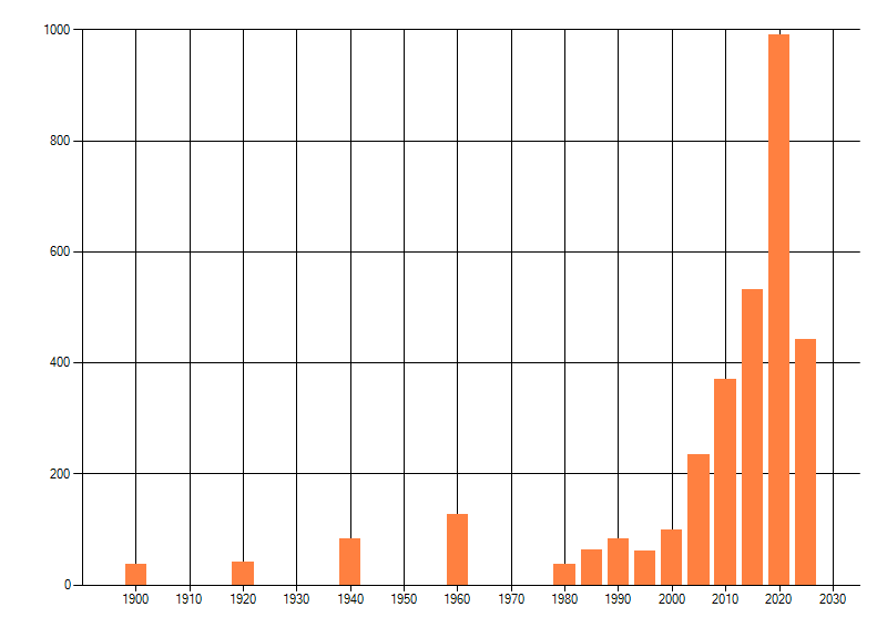 Het aantal atlasblokken (5x5 km) waarin de soort is gemeld binnen een periode van vijf jaar (vanaf 1980) of twintig jaar. Niet gecorrigeerd voor waarnemersinspanning en het aantal doorgegeven waarnemingen kan sterk variëren per periode, dus een trend in verspreiding kan hier niet direct uit worden afgelezen. Het opgegeven jaartal is het eerste jaar van de periode. Bron: gevalideerde waarnemingen uit de NDFF.