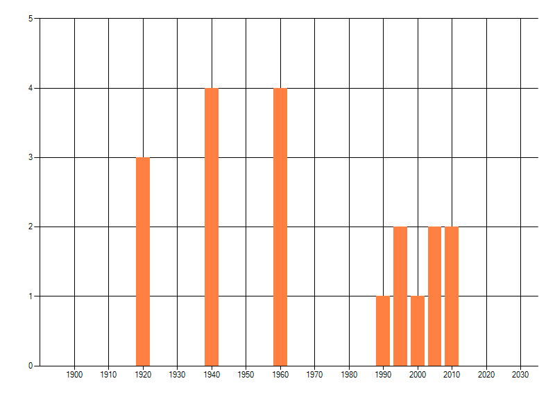 Het aantal atlasblokken (5x5 km) waarin de soort is gemeld binnen een periode van vijf jaar (vanaf 1980) of twintig jaar. Niet gecorrigeerd voor waarnemersinspanning en het aantal doorgegeven waarnemingen kan sterk variëren per periode, dus een trend in verspreiding kan hier niet direct uit worden afgelezen. Het opgegeven jaartal is het eerste jaar van de periode. Bron: gevalideerde waarnemingen uit de NDFF.
