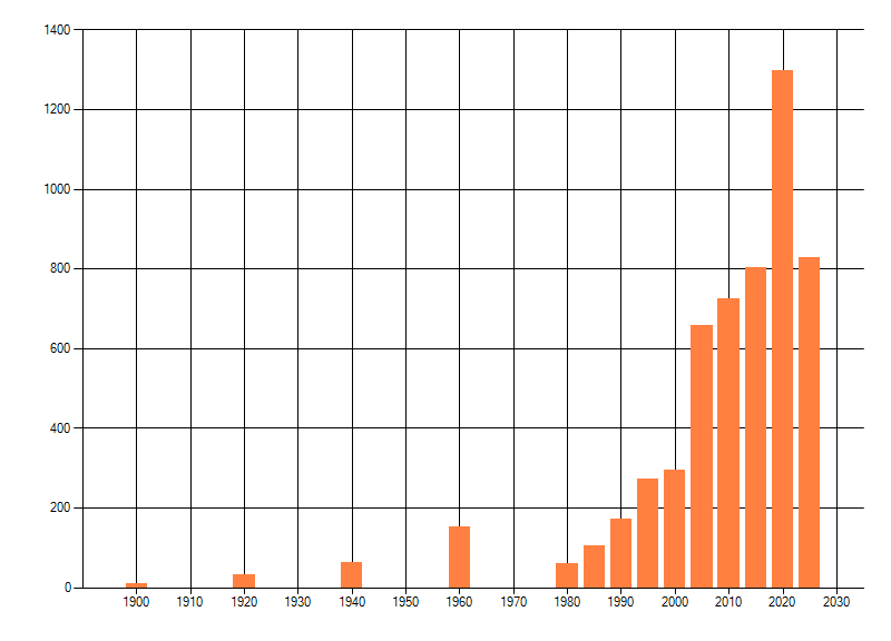 Het aantal atlasblokken (5x5 km) waarin de soort is gemeld binnen een periode van vijf jaar (vanaf 1980) of twintig jaar. Niet gecorrigeerd voor waarnemersinspanning en het aantal doorgegeven waarnemingen kan sterk variëren per periode, dus een trend in verspreiding kan hier niet direct uit worden afgelezen. Het opgegeven jaartal is het eerste jaar van de periode. Bron: gevalideerde waarnemingen uit de NDFF.