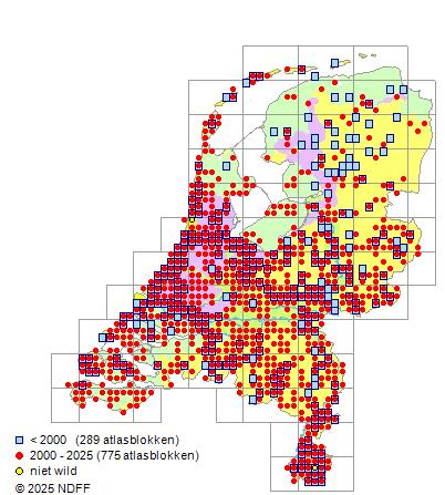 Bron: FLORON - Gemodelleerd op basis van waarnemingen uit de NDFF voor de periode 2000-2021.