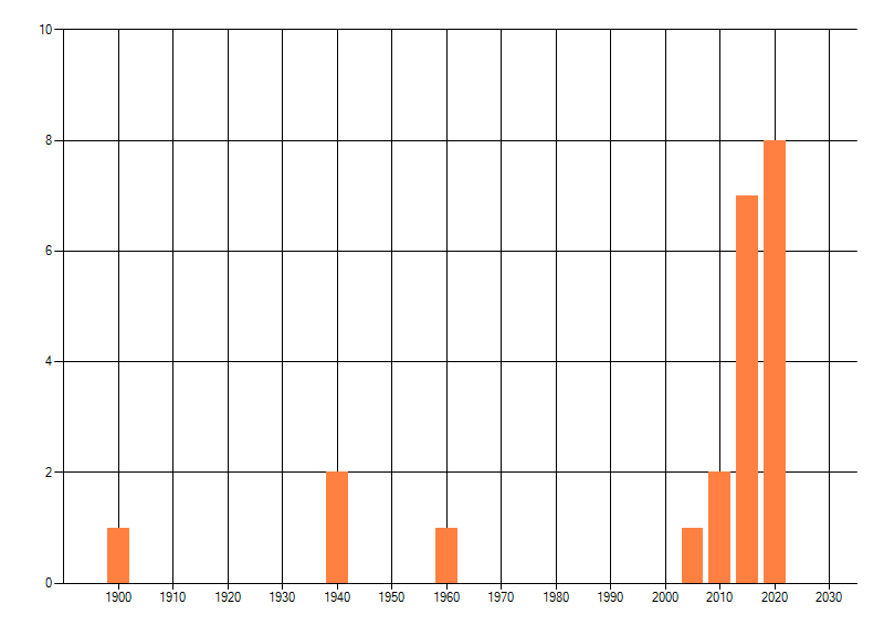 Het aantal atlasblokken (5x5 km) waarin de soort is gemeld binnen een periode van vijf jaar (vanaf 1980) of twintig jaar. Niet gecorrigeerd voor waarnemersinspanning en het aantal doorgegeven waarnemingen kan sterk variëren per periode, dus een trend in verspreiding kan hier niet direct uit worden afgelezen. Het opgegeven jaartal is het eerste jaar van de periode. Bron: gevalideerde waarnemingen uit de NDFF.